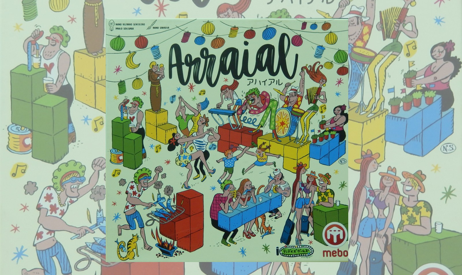 箱全面に人々がフェスティバルを楽しむ姿が色とりどりにデザインされています。