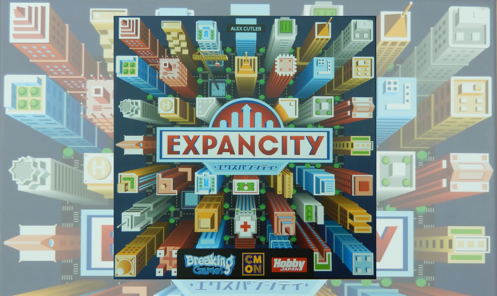 ビル・ブロック224個(赤、黄、青、緑 各56個) 得点ボード1枚 タイルバック1枚