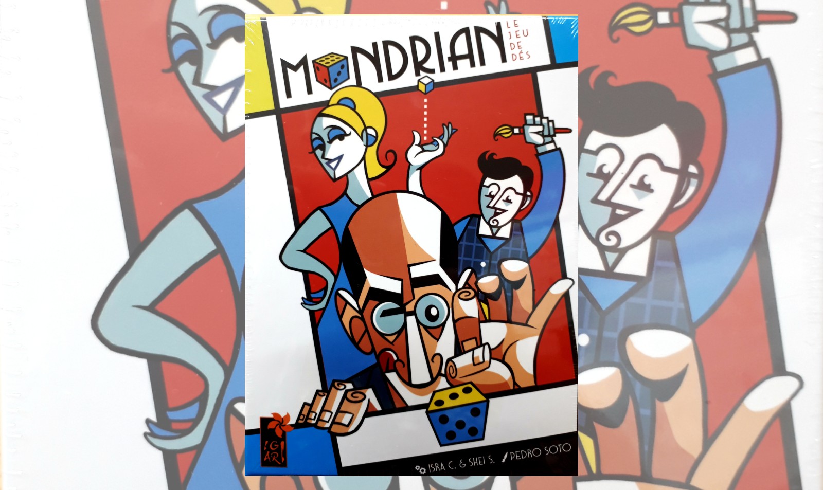 内容物はパレット型のプレーヤーボードやカラフルなカード・サイコロなどアートな仕上がりです。